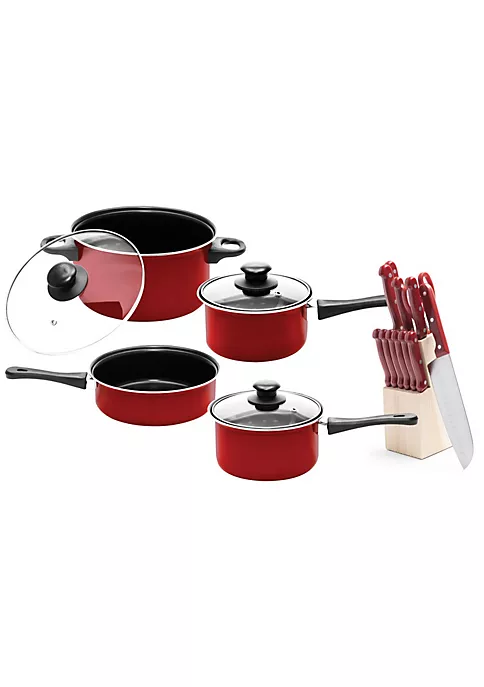 20 pc. Red Cookware Set Includes: 7 pc. Cookware Set and 13 pc. Cutlery Set