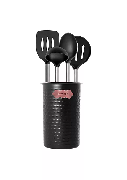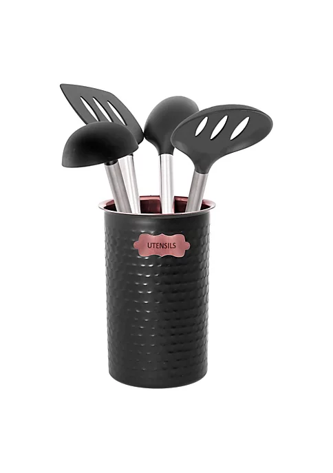 (1) Black Copper Hammered Utensil Caddy (5 Inches Tall x 4 Inches Wide)