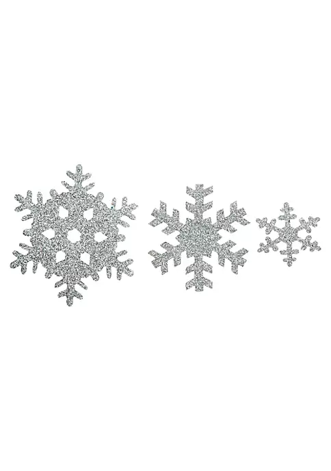 Share quality decorating time and enhance your Christmas decoration with these glittery snowflake decal! Perfect for last-minute decoration for the entrance door, fridge, bedroom door, or window. Each decal is made from high-quality thin felt and is accompanied by strong adhesive sticker material that wonโt damage or leave marks on any surface. Due to the moveable and individualized felt details, each decoration set can fit the size of any surface which encourages creativity for Santaโs helpers!