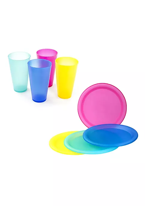 (4) 20oz Tumblers & (4) 10” Inch Dinner Plates in Assorted Colors