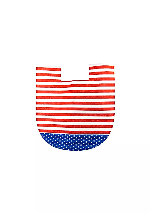 Be proud of standing on the soils of America and celebrate it with decorating your bathroom! This will not be missed by all your family and friends who comes visiting your bathroom. Includes a blue tissue cover with American stars and red bow detailing, a red and white stripes tank cover, a blue, red, and white toilet seat cover, and an anti-slip rubber back rug.