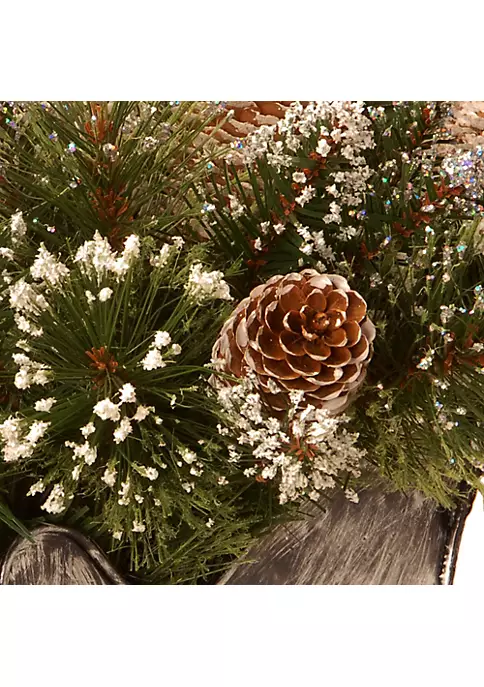 The glittery pine sleigh makes an attractive accent piece for your festive decor. The handcrafted sleigh base with the ornate rails filled with glittered branch tips and pine cones is pure bliss. It makes a perfect centerpiece for your living area porch or patios.