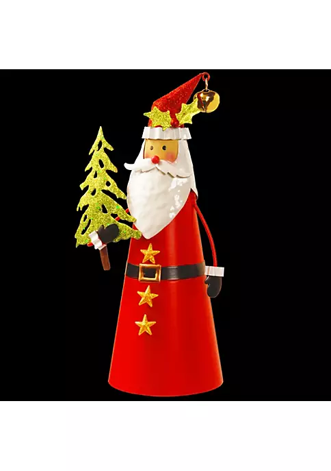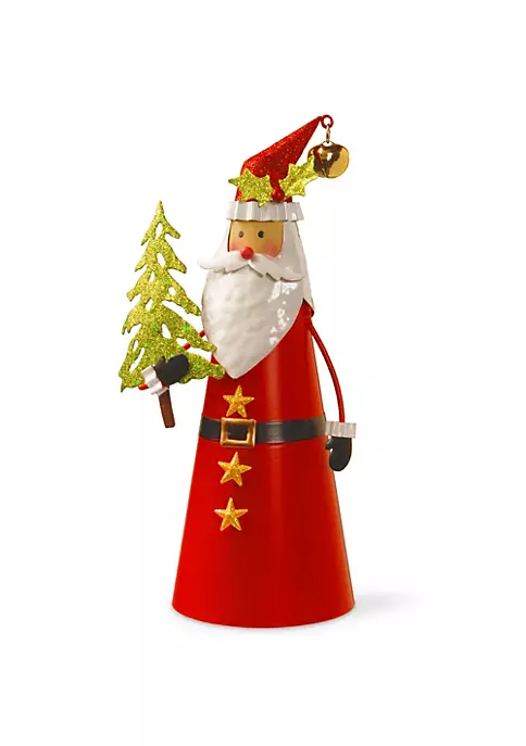 Features Santa holding an evergreen tree tabletop Christmas decor
