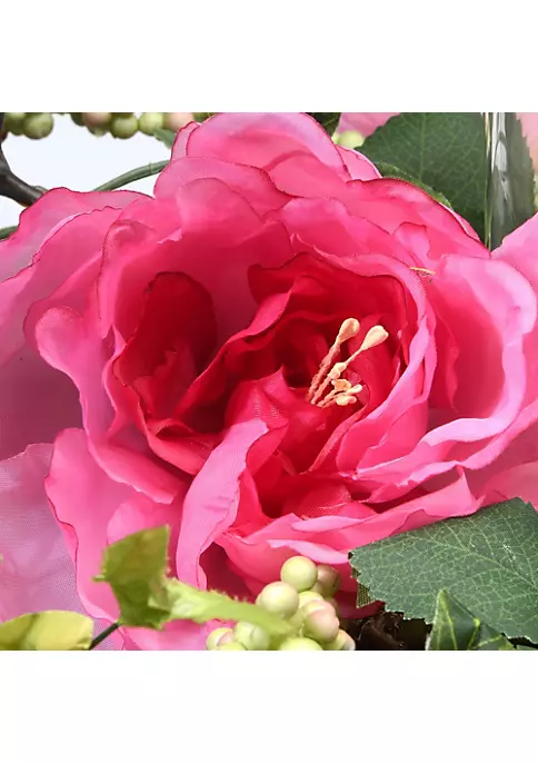 Trimmed with artificial spring flowers berry clusters and decorated eggs in pastel colors