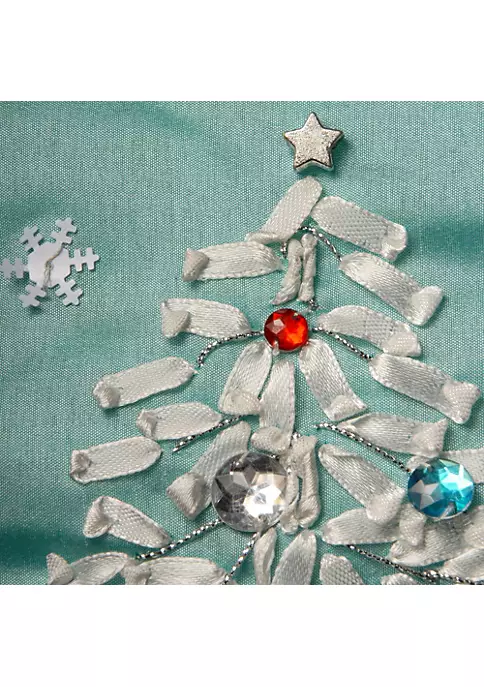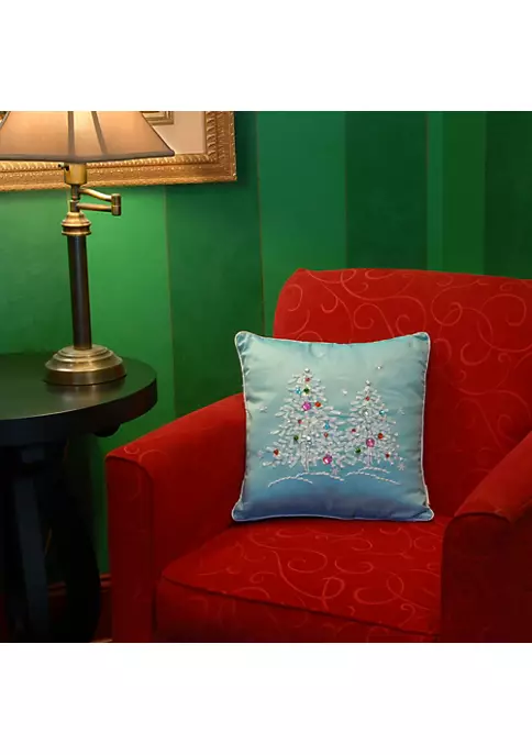With a light-toned blend cover this pillow embroidered on one side with an abstract holiday motif is an attractive accent. Displaying two Christmas trees with colorful beads the falling snowflakes add to the finishing touch. It brings a magical twist to your holiday decor.