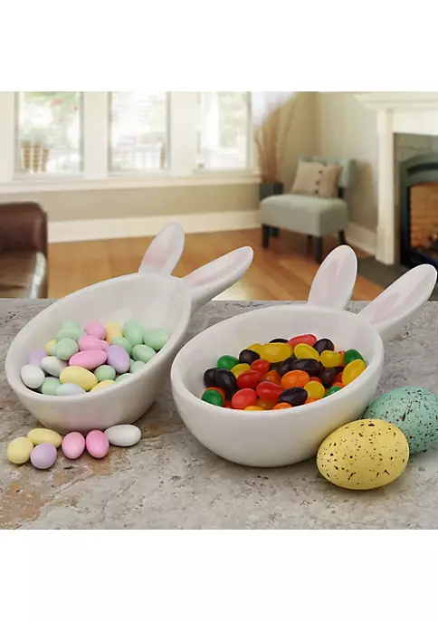Treat your friends and family with candies served in these glossy Easter-themed dishes. Each dish displays protruding bunny ears and soft-hued nose faces looking up from the side. Fill it with sweets and treats and gift a smile to your loved ones.