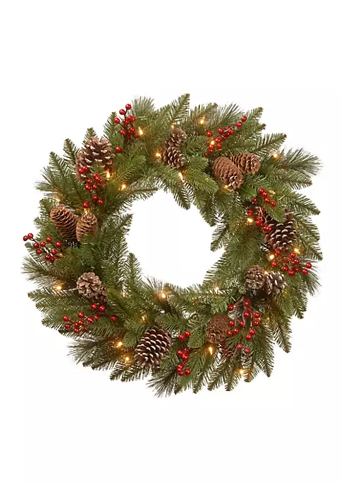 Nothing can equal the freshness of a beautiful wreath! Beautiful decoration with pine cones and berries along with energy-efficient lighting make this wreath a worthy buy for your money. Honor Christmas in your heart and try to keep it all the year.