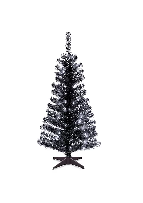 This black tinsel tree with clear lights is an innovative way to make your Christmas sparkle! It is an excellent choice to add a festive vibe to your porch hallways foyers and even office spaces. This tree is sure to bring a whole new look to your seasonal decoration!