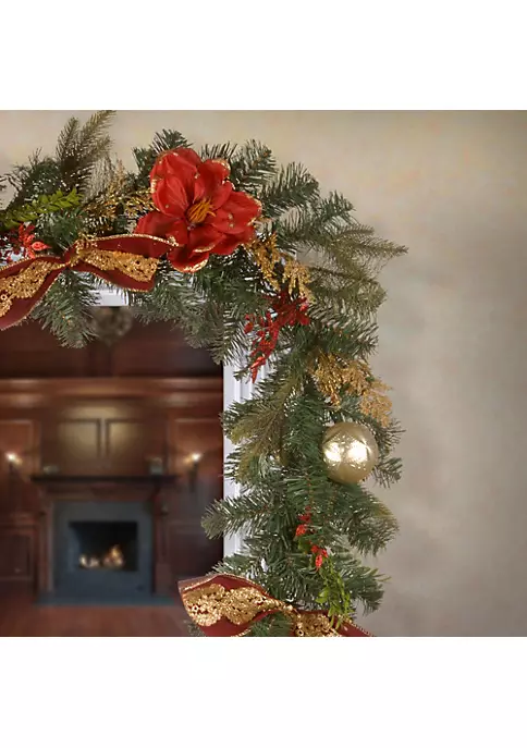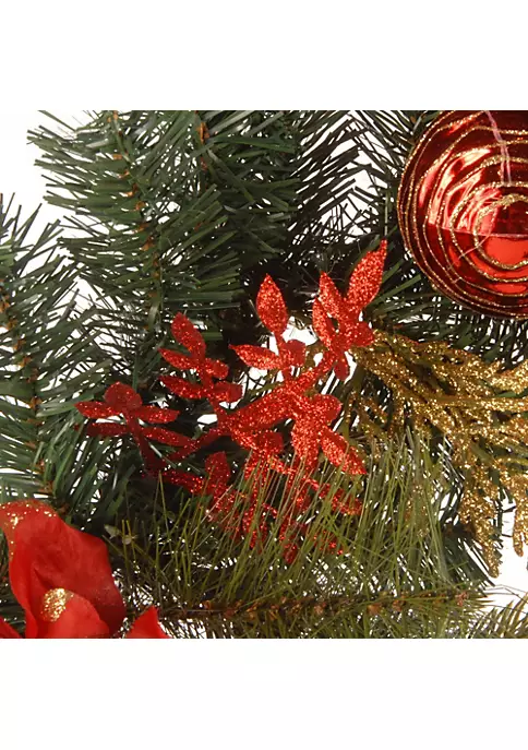 The holiday season is about to spread delight all over the world! Get your hands on this garland trimmed with ornate ball ornaments and poinsettia flower blooms for added color and warmth. Perfect for creating a stunning display near doors and windows.