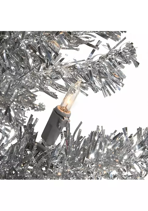 Features shiny pink tinsel tree shimmer and shine