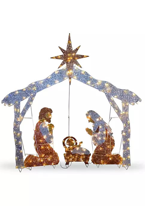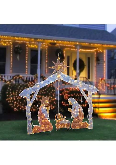 This set displays an enclosed structure comprising of kneeling Joseph Mary and Baby Jesus figurines with a shining star above. This nativity set is perfect for your living area garden or backyard. It makes an ideal gift for your loved ones too.