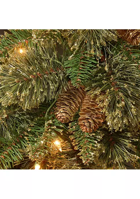 Trimmed with pine cones and dusted with gold glitter