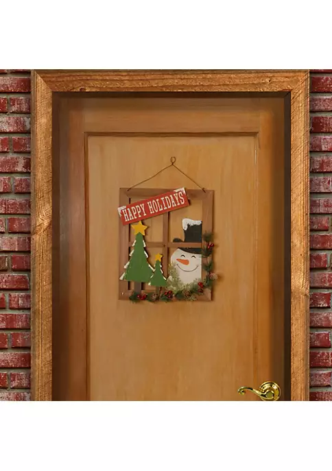 Brown and white “HAPPY HOLIDAYS” rectangular wall art