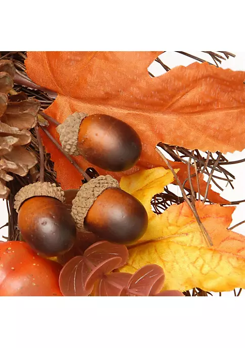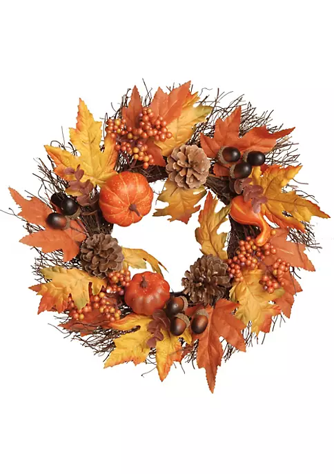 Spread an authenticated Thanksgiving vibe to your surroundings by hanging this wreath on your doors windows or walls. This round wreath featuring assorted maple leaves orange gourds pinecones acorns and berry clusters brings the essence of autumn to your space. Everyone who glances at this Thanksgiving decor would wish to possess it for their next harvest gathering!