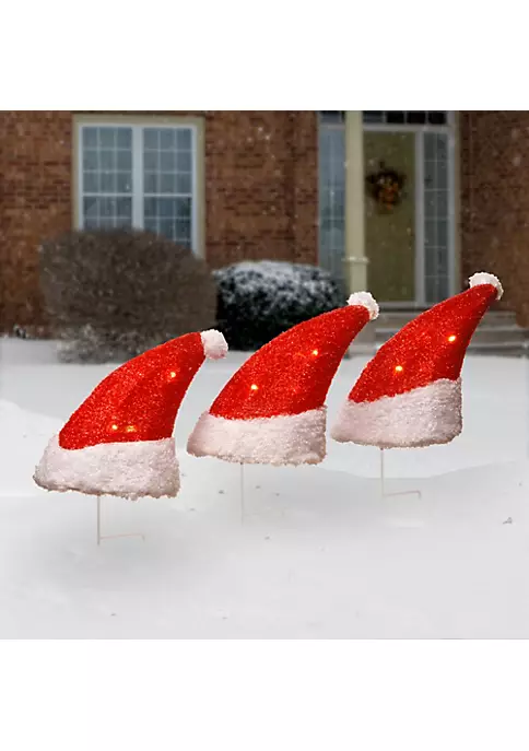 Decor features Santaโs hat and each contains five LED lights