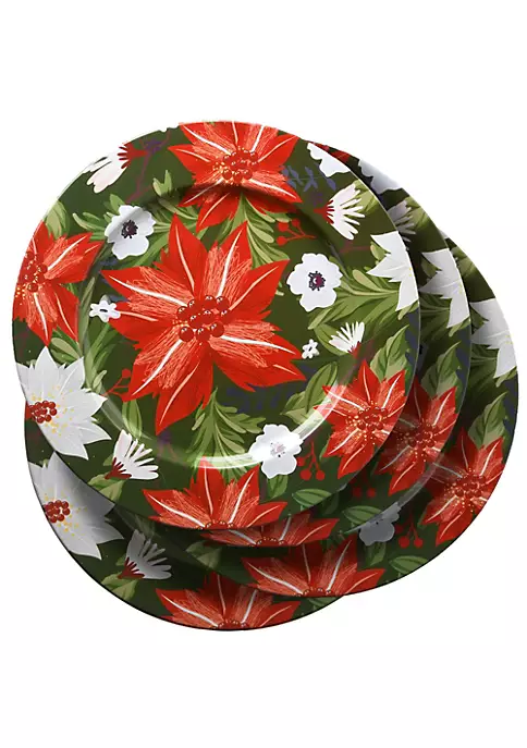 Set of four unlit red and green round holiday charger plates