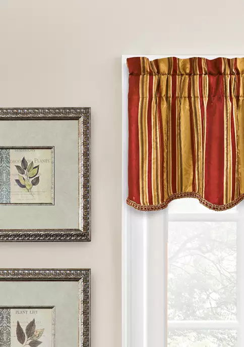 Valance measures 52 inch wide x 16 inch long with a decorative scalloped edge