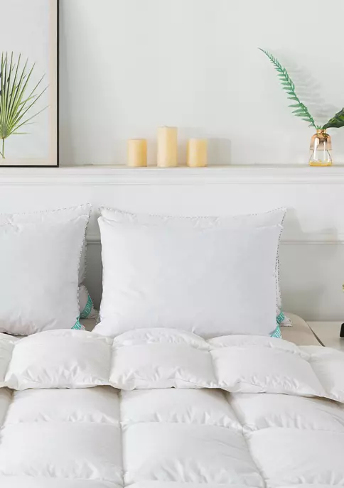 Doze of to dreamland with the Waverly Antimicrobial White Down Blend Pillow. The cotton is treated with a safe and natural antimicrobial finish to protect against odor-causing bacteria to keep your pillow fresh. This classic pillow style will stand the test of time with its 100% cotton cover and 5% white duck down and 95% white duck feather fill. Pillow is machine washable for easy care. Natural fill is washed with oxipower technology that exceeds the industry standard for cleaning natural fill contents. We wash our material 18 separate times to ensure a complete disinfected and hypoallergenic fill which is Responsible Down Standard certified. Standard/Queen includes 1 bed pillow 20×28 inches. King includes 1 king bed pillow 20×36 inches. This item is machine washable; however, please make sure equipment is large enough to allow the item to move freely in wash.