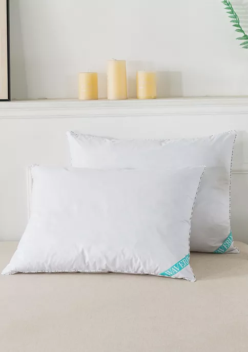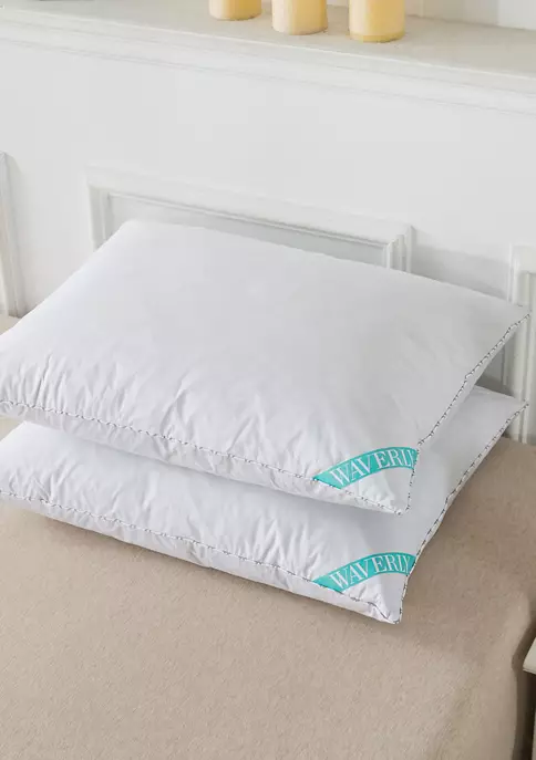 Drift into a restful nights’ sleep with this Waverly Antimicrobial White Goose Nano Feather Pillow Set. The 100% cotton cover is treated with a safe and natural antimicrobial finish to protect against odor-causing bacteria to keep your pillow fresh. Enjoy a poke-free experience with our Nano feather fill. Pillows are machine washable for easy care. Natural fill is washed with oxipower technology that exceeds the industry standard for cleaning natural fill contents. We wash our material 18 separate times to ensure a complete disinfected and hypoallergenic fill which is Responsible Down Standard certified. Standard/Queen includes 2 bed pillows 20×28 inches. King includes 2 king bed pillows 20×36 inches. This item is machine washable; however, please make sure equipment is large enough to allow the item to move freely in wash.