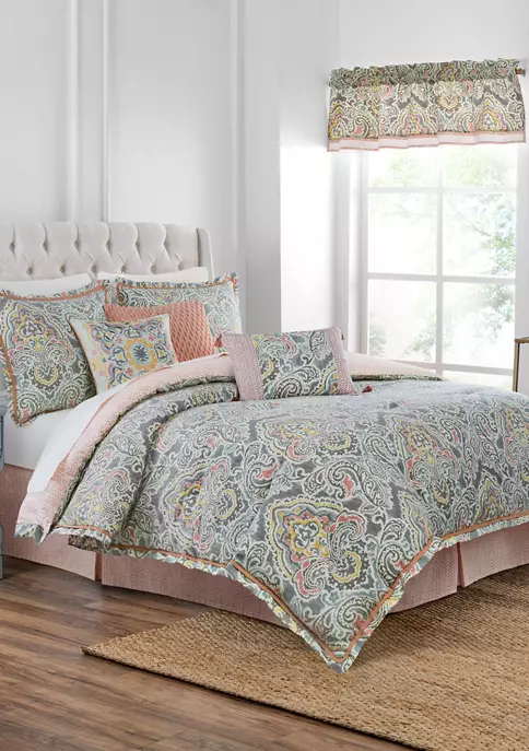 The comforter, shams, and bed skirt are machine washable for easy care. Complete your designer look by layering on coordinating accent pillows and lined window treatments, all sold separately.
