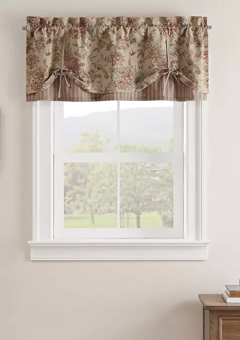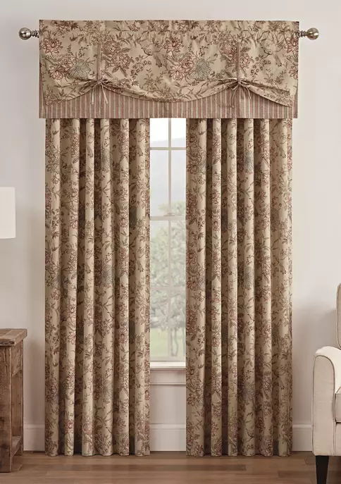 Refresh any room in your home with classically elegant window treatments by Waverly®. Exquisite and versatile, the Lucchese Tie Up valance features a beautiful farmhouse floral pattern on an elegant ground. Box pleat embellishments add style and charm. Perfect for kitchen, bedroom, or living room. Pair with the Lucchese Tie Up curtain panel to complete the look. Valance measures 52-inches wide x 18-inches long. Hang coordinating panels and valance on standard or decorative curtain rod. 2-inch header adds decorative flair. 3-inch rod is recommended with up to a 1.5-inch rod.