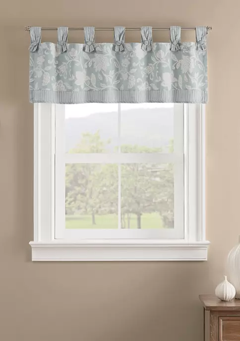 Refresh any room in your home with classically elegant window treatments by Waverly®. Exquisite and versatile, the Stencil Vine valance features a beautiful farmhouse floral pattern on an elegant ground. Box pleat embellishments add style and charm. Perfect for kitchen, bedroom, or living room. Pair with the Stencil Vine curtain panel to complete the look. Valance measures 60-inches wide x 19-inches long. Hang coordinating panels and valance on standard or decorative curtain rod. 2-inch header adds decorative flair. 3-inch rod is recommended with up to a 1.5-inch rod. Curtain rod sold separately.