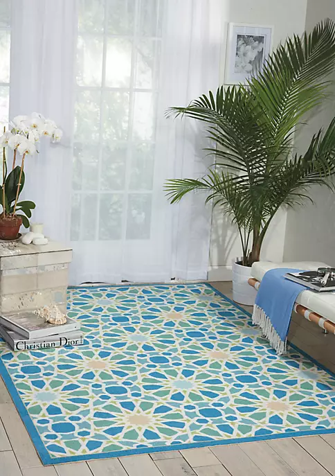 The Sun & Shade Collection by Waverly® brings a new level of quality and sophistication to the world of indoor/outdoor rugs. With on-trend color palettes and signature designs from the acclaimed Waverly® studios, these marvelously versatile rugs are lovely to look at, and a delight to walk on. Power-loomed from top quality 100% polyester yarns to retain their beauty in almost all outdoor conditions. Easy to clean – just rinse with your garden hose.