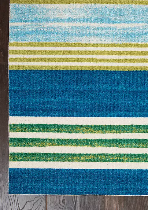 The Sun & Shade rug by Waverly® brings a new level of quality and sophistication to the world of indoor/outdoor rugs. With on-trend color palettes and signature designs from the acclaimed Waverly studios, these marvelously versatile rugs are lovely to look at, and a delight to walk on. Power-loomed from top-quality polyester yarns, these retain their beauty in almost all outdoor conditions. Easy to clean – just rinse with your garden hose.